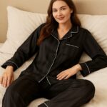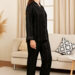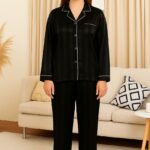 Drift into dreamland in our striped Satin PJ set. Crafted from silky-smooth satin, this set offers a luxurious feel against your skin, ensuring ultimate comfort for a restful night sleep or relaxed lounging. It’s the perfect blend of classic elegance and modern comfort. Unwind in serene style. The sophisticated silky stripes offer a chic, clean look, while the premium satin fabric provides a cool, soft touch. Designed for a comfortable fit, this set is ideal for peaceful evenings and leisurely mornings, adding a touch of effortless luxury to your downtime.